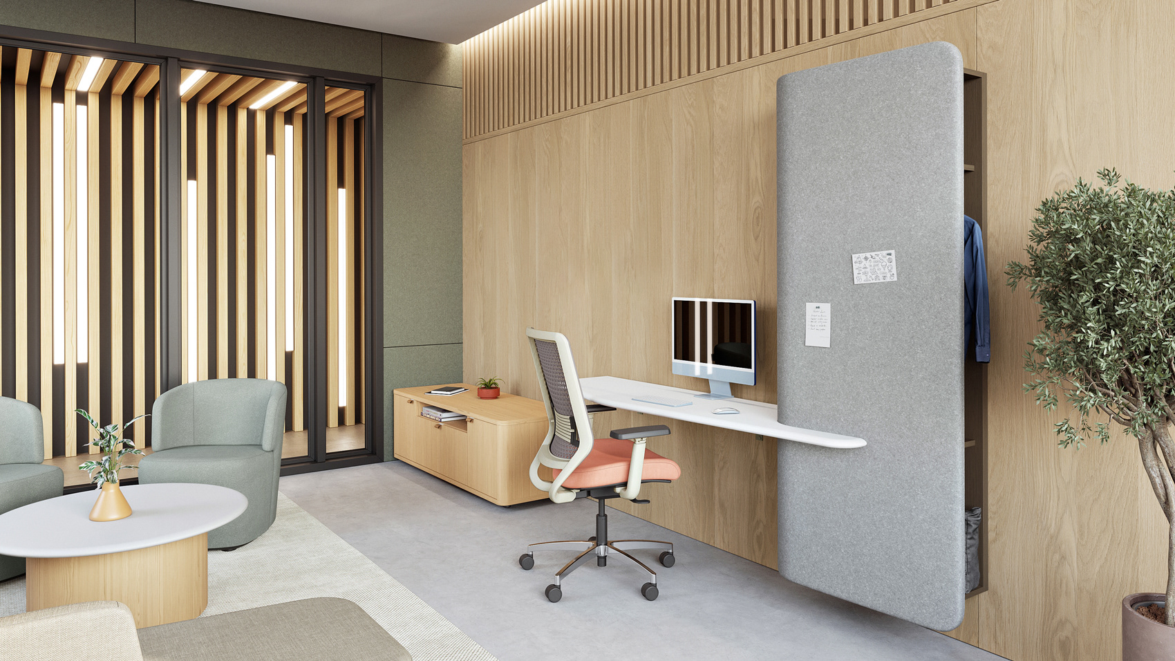 Ally, designed for OFS, is a private office solution designed to build trust and reimagine the role of leadership in the workplace. A place where managers become mentors, employees become partners, and meetings become collaborations.